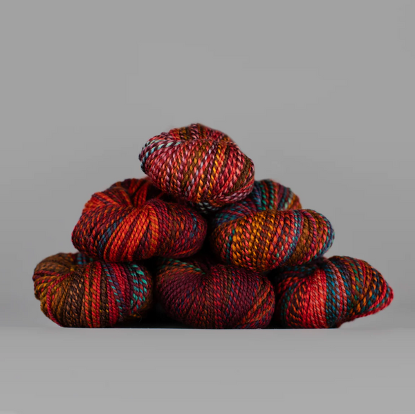 All of their yarns are dyed in the wool, a slow and meticulous process resulting in long color changes and unpredictable transitions through the skein. Every skein is One-of-a-kind, like every knitted project. All of Spincycle wool is grown, processed, dyed and spun in the USA.