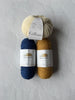 Our kits have one skein each of germantown Oxford Blue and HOney and 1 Skein of Gilliat in Sel