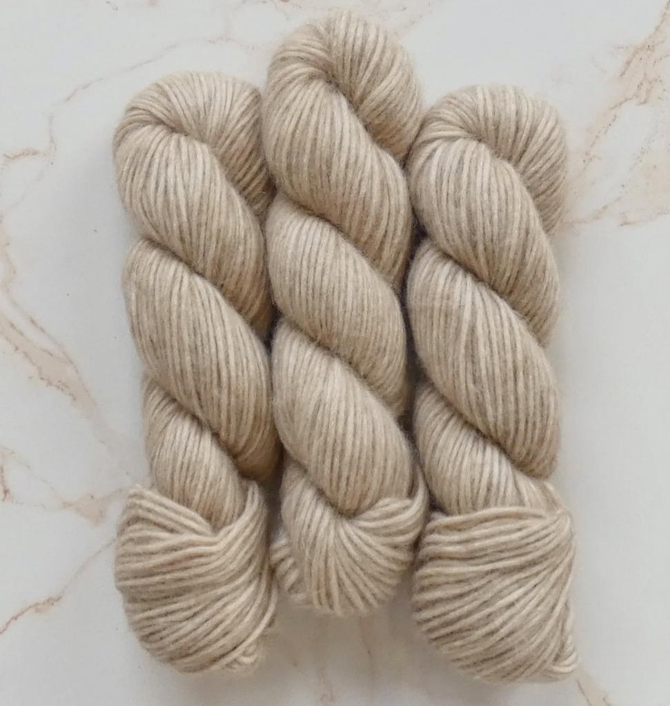 -Sample 4 (Heavy Worsted/Aran) - The Wandering Flock Fluff (35% Baby Suri Alpaca/15% Wool/50% Pima Cotton) Approximately 200 g/524 yds/479 m - 4 skeins Sky blue