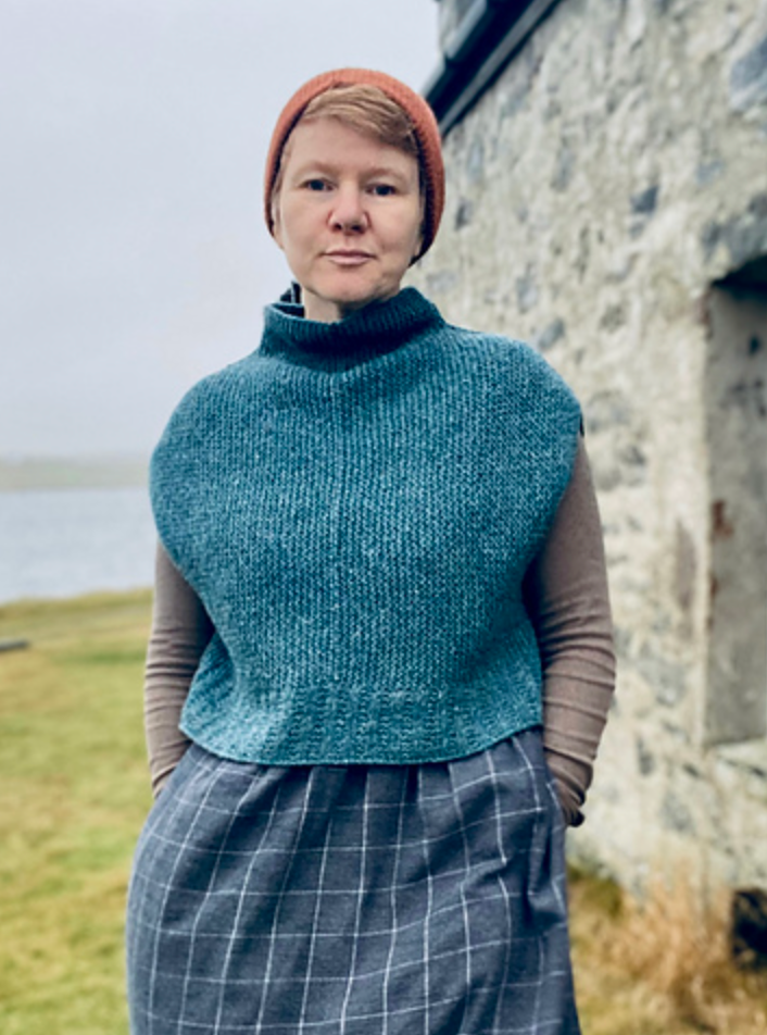 This vest is worked entirely in garter stitch in four separate segments and then joined together with Three Needle Bind Offs. The back and front are identical. The garter stitch ridges will sit vertically when worn.